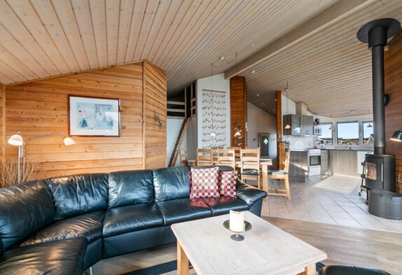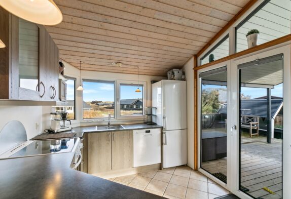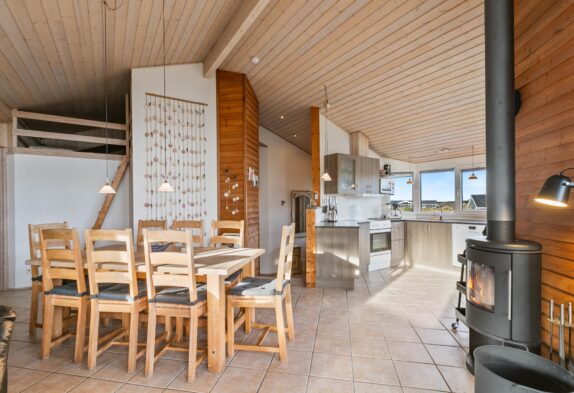 Når det er tid til et måltid mad eller afslapning indendørs, kommer køkkenalrummet jer til gode. Her er der altid mulighed for hyggeligt samvær med familien, en god film eller et lækkert måltid fra husets funktionelle køkken. Her finder I også huset brændeovn som kan holde jer varme på en stemningsfyldt måde, hvis ikke varmepumpen eller elradiatoren skulle være jeres smag.
