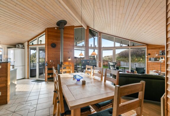 Når I træder ind i huset, møder i et velholdt og indbydende indrettet hus. Her er der moderne faciliteter blandet med den charmerende indretning. I hele huset finder i træbeklædte vægge, som giver en rigtig hyggelig stemning af ægte sommerhusferie.