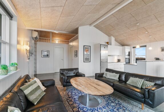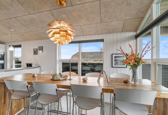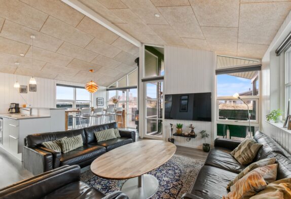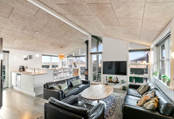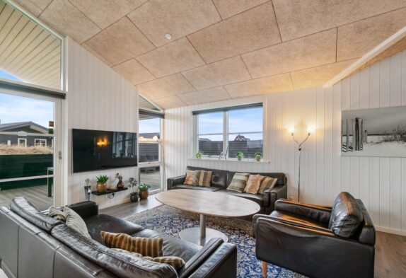I dette hus kan man nyde en ferie i et moderne sommerhus på Holmsland Klit. Huset er smagfuldt indrettet og fremstår særdeles lyst og indbydende. Gulvene er flotte og rengøringsvenlige, og der er 2 lækre badeværelser. Fra det store badeværelse med sauna er der en terrassedør ud til udespaen på terrassen. Huset er forsynet med flere fladskærms-TV, så både de voksne og børnene kan se det, de gerne vil. Efter en delig feriedag kan I slappe af husets spa eller sauna. Her kan I rigtigt blive varmet igennem og blot lade tankerne flyde.