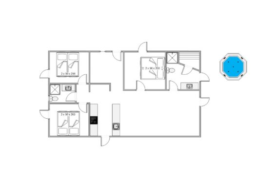 Feriehuset er rigtig rummeligt med 125 kvadratmeter at brede sig ud på. Det er indrettet med 2 badeværelser, og på det største har I adgang til jeres egen sauna, hvor I kan forkæle jer selv lidt ekstra på ferien. Der er sørget for alle moderne bekvemmeligheder, og huset er udstyret med både opvaskemaskine, vaskemaskine, tørretumbler og en hurtig og stabil internetforbindelse. Alt hvad I skal bruge til en komfortabel og dejlig ferie på den jyske vestkyst.
