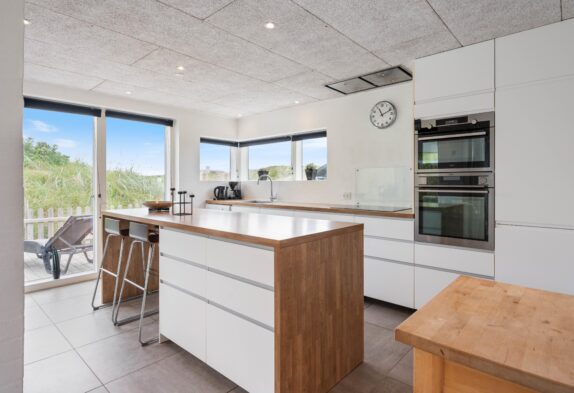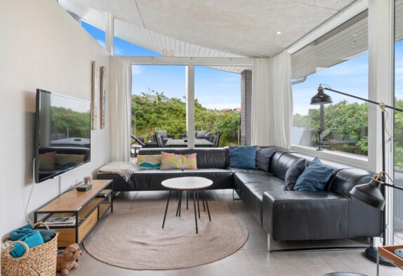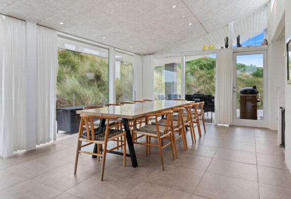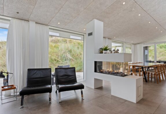 De store vinduespartier inviterer naturen indenfor i det store opholdsrum. Feriehuset har en unik udsigt til et naturskønt område og ligger i gåafstand til Vesterhavet. Så ture langs det fine hvide sand vil være oplagt under ferien.
