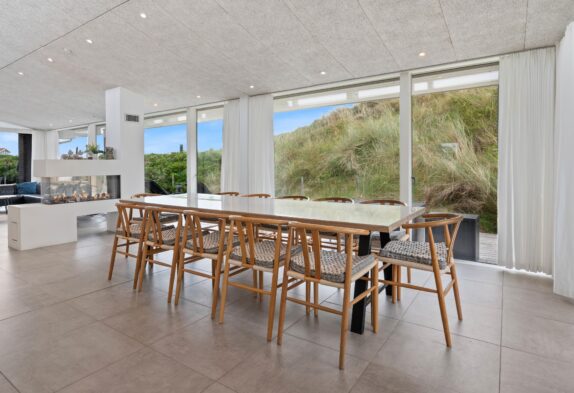 Klitdalen 57 er indrettet i moderne skandinavisk stil, hvor man har formået at skabe en rigtig hyggelig atmosfære bl.a. ved at placere en stor gaspejs midt i rummet. Fra den store, lyse stue har man direkte adgang til en flot og lækker træterrasse mod syd, hvor der nemt findes en lækrog så solen og den vestjyske natur kan nydes på tætteste hold. I kælderen finder I aktivitetsrummet, hvor der både er billard, bordfodbold og bordtennis, så der er dermed alle forudsætninger for en fantastisk ferie – uanset årstid og vejr.