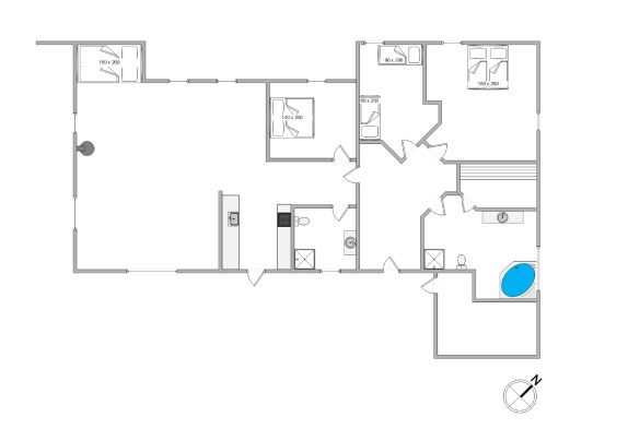 Selve sommerhuset er på 110m2 og fordeler sig på tre soverum, hvoraf det ene har dobbeltseng. Der er både brændeovn, spabad og sauna til at skabe en ægte sommerhusstemning.