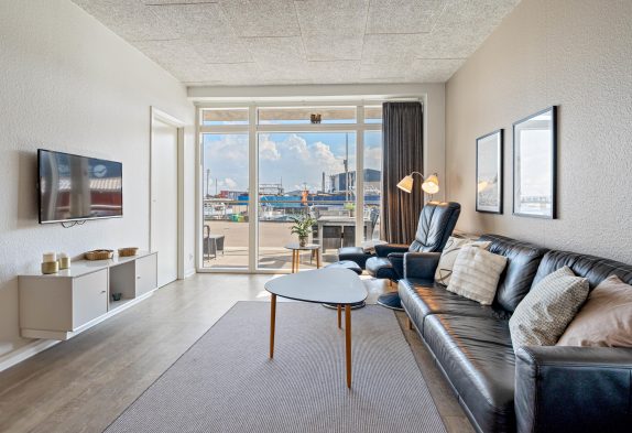 Den stilfulde ferielejlighed rummer plads til 4 personer (og 1 hund) og sætter rammerne for en skøn ferie med alt inden for rækkevidde. I vil straks føle jer velkomne i det flotte feriehjem med lækkert interiør, lyse farver og store vinduer, der inviterer solen og havnemiljøet indenfor.