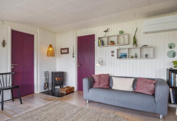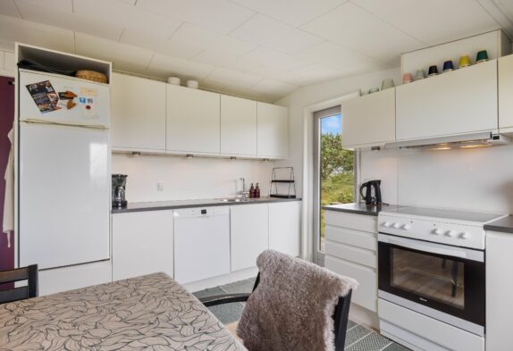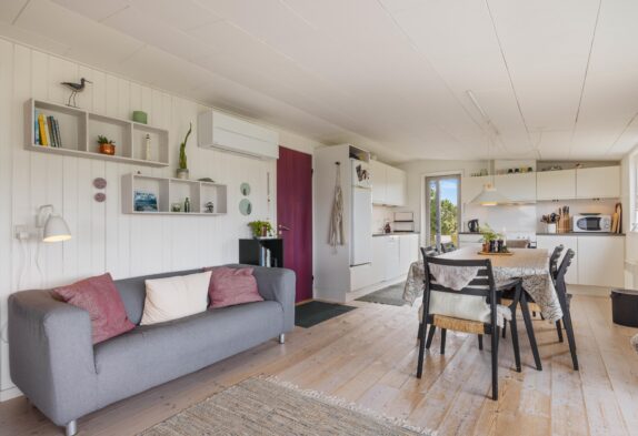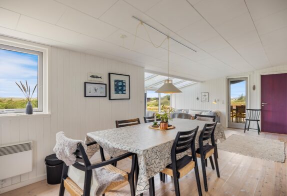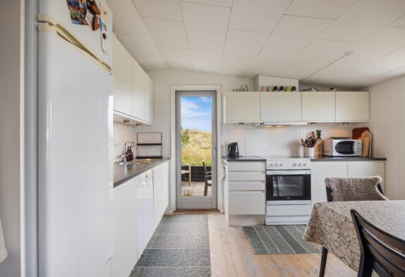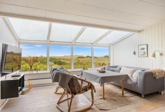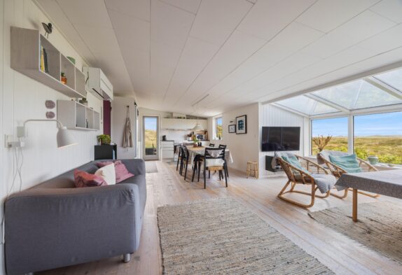 Huset er indrettet med respekt for den omkringliggende natur. Stilen er enkelt og flot og uden de store armbevægelser. Her skal indretningen ikke tage fokus fra det væsentlige – den flotte natur udenfor og udsigten over klitterne. Vægge og lofter er holdt hvide i både køkken og alrum, hvilket skaber en rar og god stemning. Huset har desuden sauna, brændeovn samt gratis, trådløst internet.