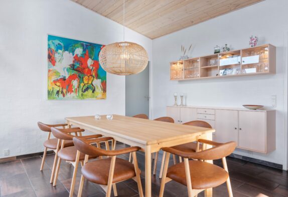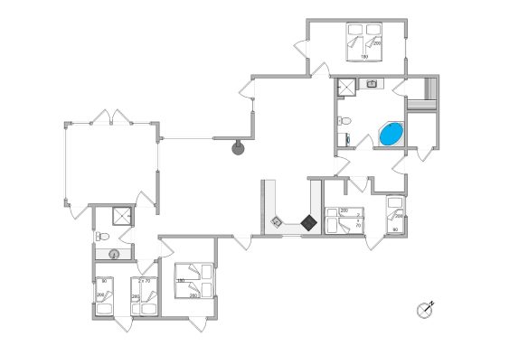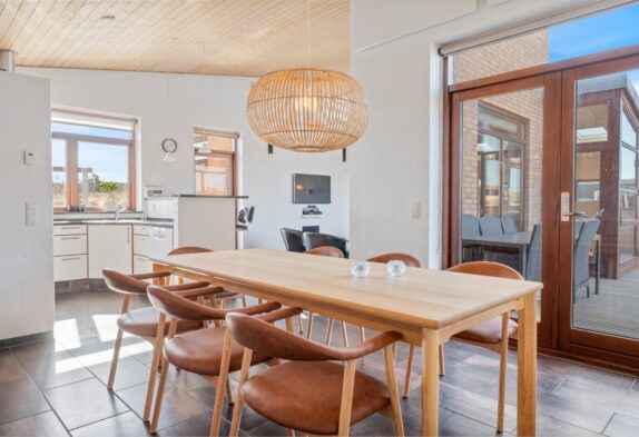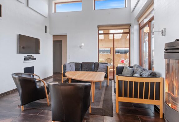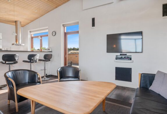 Sommerhusets indretning er både lys, venlig og moderne. Der er dejligt højt til loftet og feriehusets mange vinduer sørger for et flot lysindfald og en dejlig indbydende stemning i huset. Sommerhuset er et perfekt valg for jer, som gerne vil bo i moderne omgivelser med alt det, du forventer af et nyere feriehus, såsom spabad, sauna og alt i hårde hvidevarer. Det superflotte badeværelse er dejligt rummeligt. Det er også her, du finder feriehusets spabad, som er dejlig at hoppe i efter en lang og aktiv dag med familien.