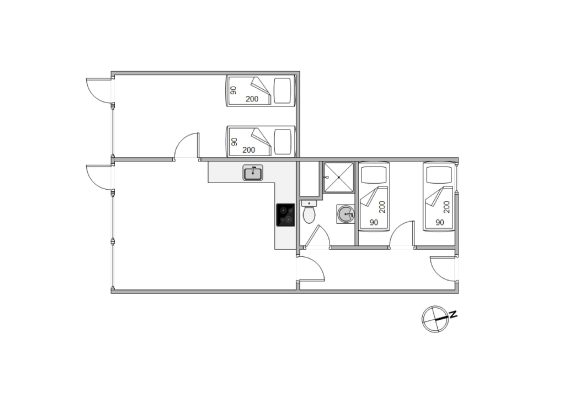 Det lyse køkken, som indeholder en opvaskemaskine, ligger i sammenhæng med stuen, så der er mulighed for hyggeligt samvær, mens maden laves. Huset har 2 gode soveværelser med gode senge og skabsplads.