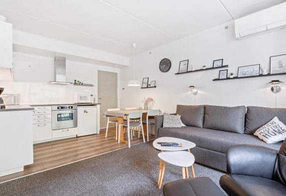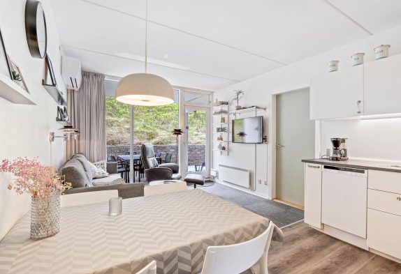 I ferielejlighedens hjerte finder i stuen, hvor i har mulighed for at se TV med danske, norske, svenske og tyske kanaler.