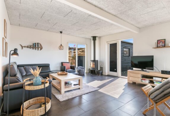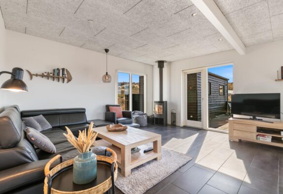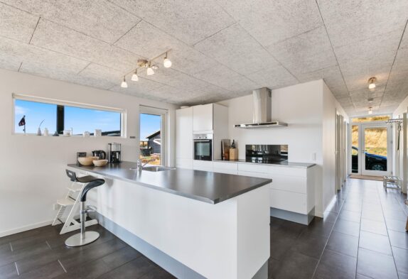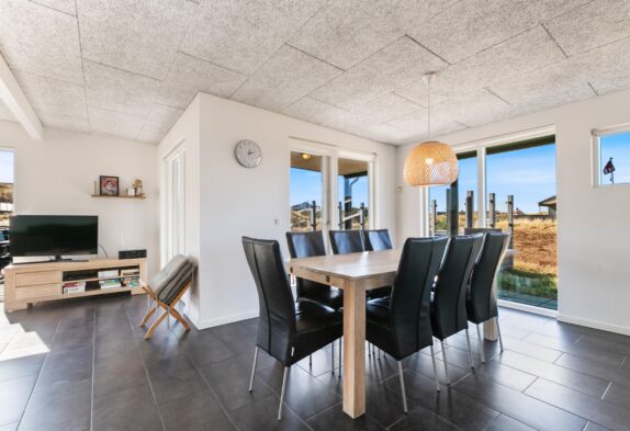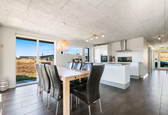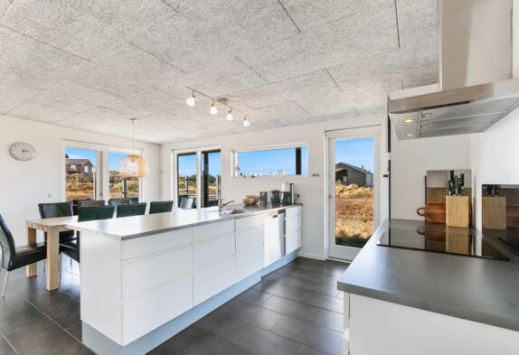 De store vinduer i huset sørger for et godt lysindfald uanset årstiden. I dette moderne og stilfulde feriehus kan du tilbringe en afslappende ferie med din familie eller dine bedste venner. Huset er yderst veludstyret og råder både over vaskemaskine, tørretumbler og opvaskemaskine, der alle er med til at gøre din ferie så bekvem så mulig.