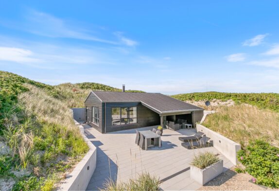 Huset har en dejlig, åben terrasse som inviterer til afslapning i den dejlige sommersol. Fra terrassen kan I også nyde en hel fantastisk panoramaudsigt ud over Søndervig. Den ene side af terrassen er desuden overdækket, hvilket forlænger jeres dage ude. Her er det oplagt at nyde et godt måltid mad med en god flaske vin. Når I sidder på terrassen, er det samtidig muligt have et øje på børnene. Feriehuset er også udstyret med gode udemøbler, liggestole og grill.