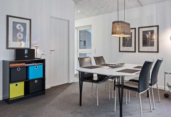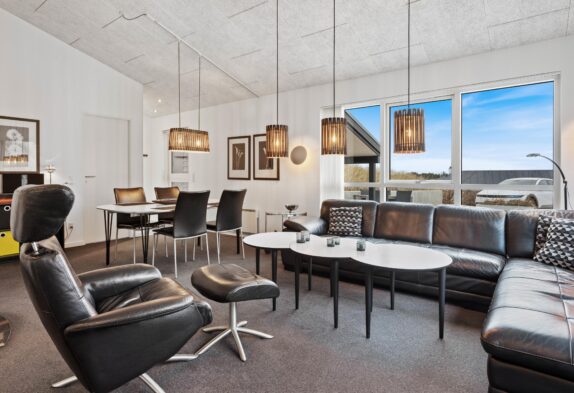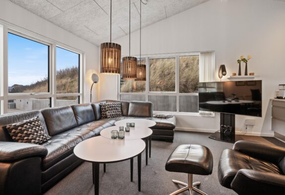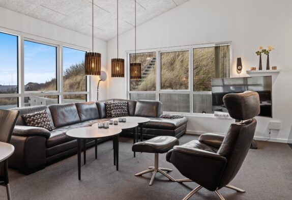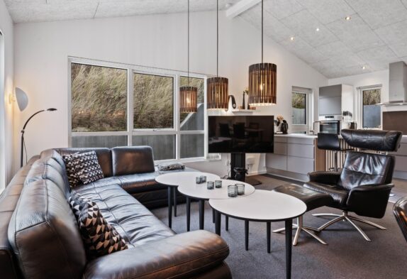 Husets hjerte er det rummelige opholdsrum. Her kan I bruge kvalitetstid sammen hvor I blandt andet kan lave mad sammen. Her behøver I ikke bekymre jer om opvasken, for den skal husets opvaskemaskine nok klare for jer. I kan også spille jeres egne medbragte bræt- eller kortspil eller bare slappe af i feriehusets komfortable sofa.