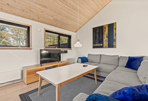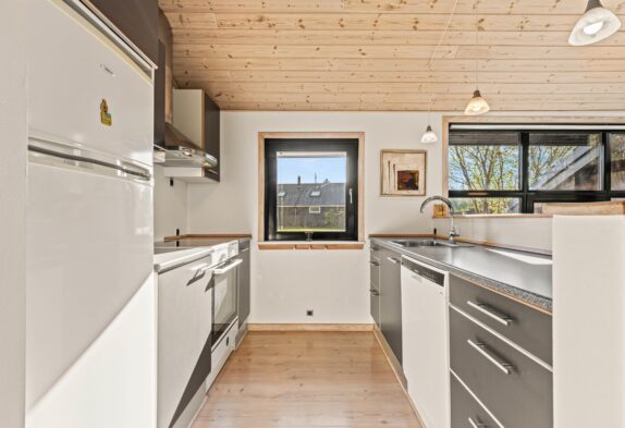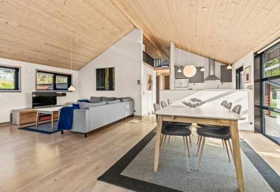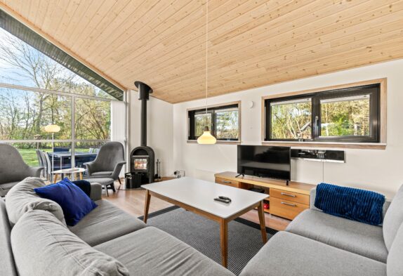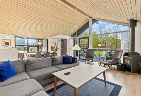 Her er der masser af mulighed for at slappe af og nyde familietiden sammen. I det store fællesrum med stue, køkken og spiseafdeling kan I samles til gode feriemiddage, kortspil og sofahygge foran den knitrende brændeovn.