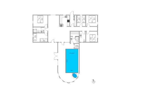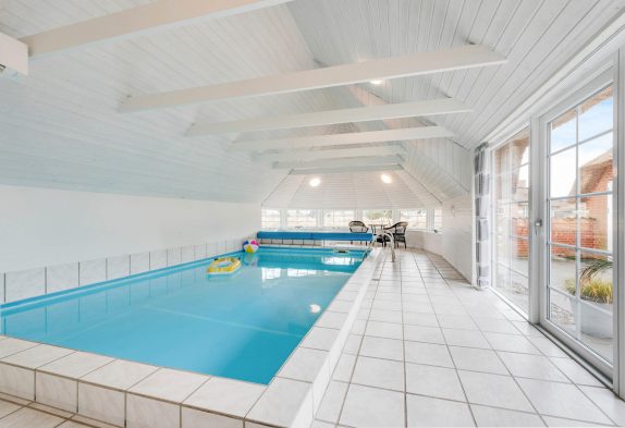 Det store 10-personers sommerhus har en 16m2 stor pool, der sikrer timevis af underholdning. Her er I aldrig afhængige af vejret. Poolen er altid åben og klar til at hoppe i. Der er også plads til, at man kan svømme nogle baner frem og tilbage, inden børnene kaster sig over vandet. Der er samtidig et spabad, hvis I ønsker mere afslapning. Har I brug for at få varmen, så kan I benytte jer af saunaen.