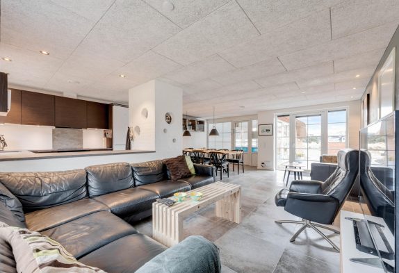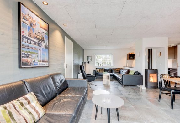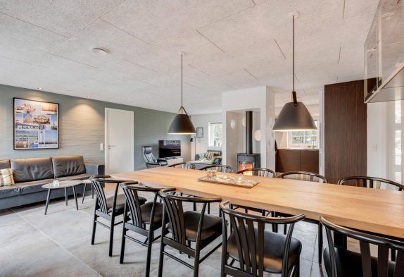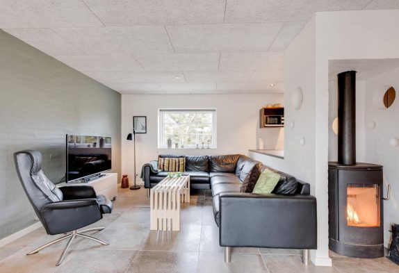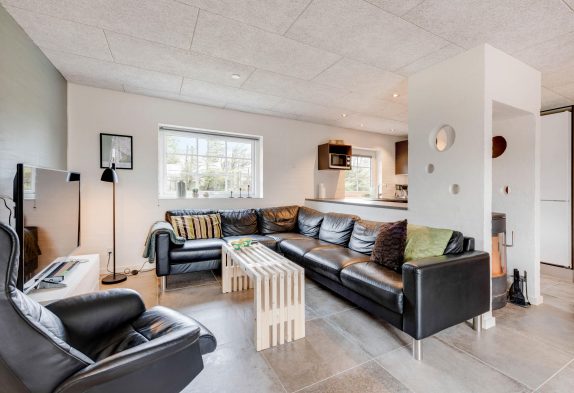 Troldedalen 36 har med sine 185 m2 plads til 10 personer. Feriehuset rummer alt hvad der er brug for, for at I kan holde en dejlig ferie. Sommerhuset har et funktionelt og åbent køkken, som ligger i direkte forbindelse med husets stue. Her er der plads til, at I alle kan samles om en god film på fladskærms-tv’et eller et brætspil. Samtidig kan I med fordel tænde op i brændeovnen og nyde varmen og den knitrende lyd fra ilden. Feriehuset er indrettet med gode soverum med både dobbeltsenge og enkelmadssenge.