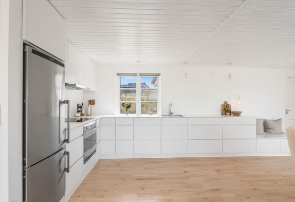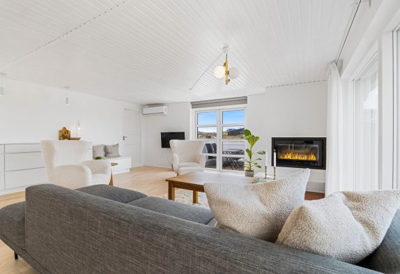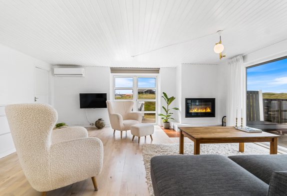 Ferien bliver endnu mere afslappende med sommerhusets moderne faciliteter. Nyd bekvemmeligheden af en opvaskemaskine, så du slipper for at stå og vaske op i ferien. En vaskemaskine er også til rådighed, hvilket er praktisk, hvis opholdet strækker sig over flere dage. Luft-til-luft varmepumpem sikrer, at I altid har en behagelig temperatur indenfor, og den store stue indbyder til hyggelige stunder.