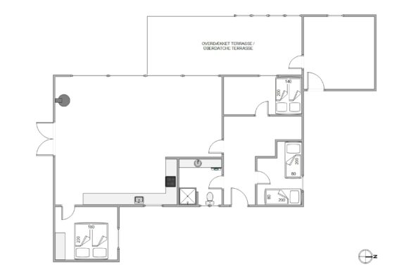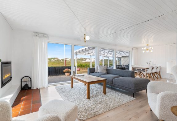 Et af højdepunkterne ved dette sommerhus er den overdækkede terrasse, hvor I kan nyde måltiderne ude i det fri eller bare slappe af med en god bog i hånden. Terrassen giver mulighed for at nyde den friske luft uanset vejret og I kan tilbringe kvalitetstid sammen udenfor. Slå jer ned i de behagelige havemøbler, og nyd den helt uforstyrrede udsigt udover de smukke klitter.