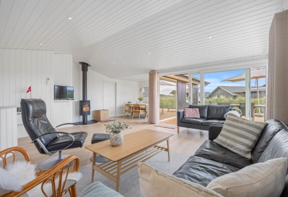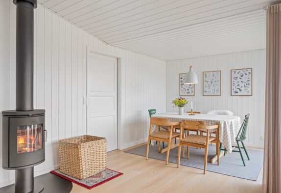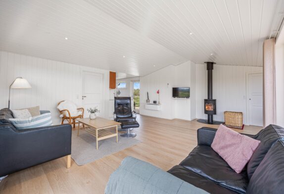 Inde i sommerhuset finder I en hyggelig brændeovn, som bliver et naturligt samlingspunkt på kølige dage. Efter en lang dag ude i den friske luft, kan I få varmen tilbage i kroppen foran brændeovnen med en kop varm kaffe – en perfekt måde at slutte en dejlig feriedag af på. En energibesparende luft til luft varmepumpe holder temperaturen behagelig året rundt.
