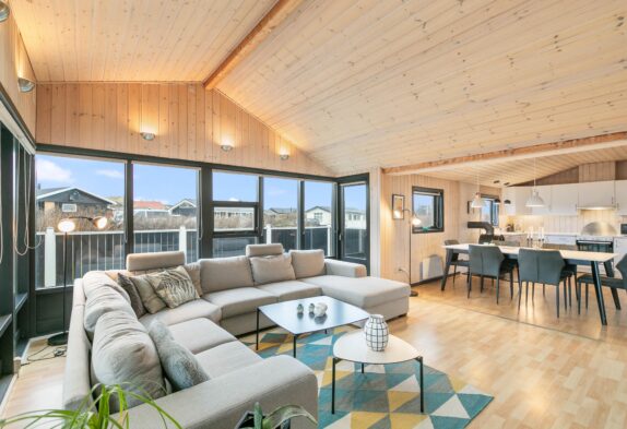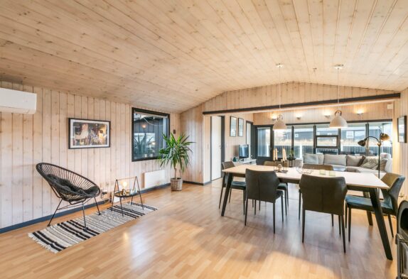 Køkkenet og spiseafdelingen er i et stort åbent rum, så hele familien rigtig kan hygge sig og spille spil, mens der også tilberedes lækkerier. Og bagefter har du måske lyst til at sætte dig godt til rette i sofaen og se en god film eller læse en spændende bog. Sommerhuset tillader også én hund, så I kan tage familiens firbenede ven med jer på ferie.