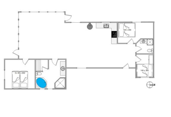 Feriehuset blev renoveret i 2005, så det i dag fremstår lyst, venligt og indbydende til en dejlig ferie. Det er flot og rummeligt indrettet, så du og familien har masser af plads. Sommerhuset består af i alt 98m2 og kan i alt rumme op til seks feriegæster, hvorfor de to badebadeværelser i sommerhuset altid er et plus – især når det ene har både har spabad og sauna, hvor du rigtig kan slappe af og nyde varmen.