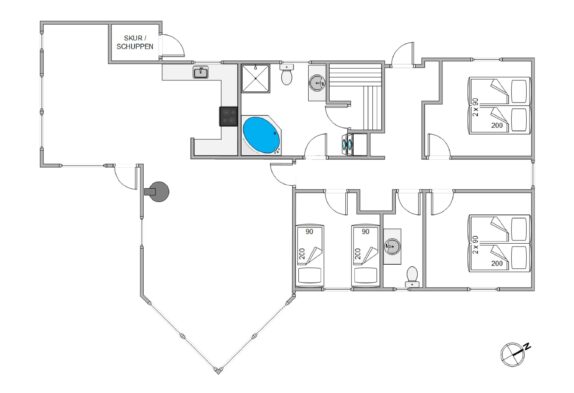 Sommerhuset er fra 2012 og alt i indretningen fremstår både lyst og indbydende. Møblerne i huset er behagelige, og derudover rummer sommerhuset alle de moderne faciliteter, man forventer af et godt sommerhus. Her er virkelig tænkt på gæsternes velbehag, og I kan blandt andet finde et spabad, sauna, opvaskemaskine og tørretumbler. Alle disse bidrager til, at I kan få en afslappende og bekvemmelig ferie, hvor I kan få ladet jeres batterier op.