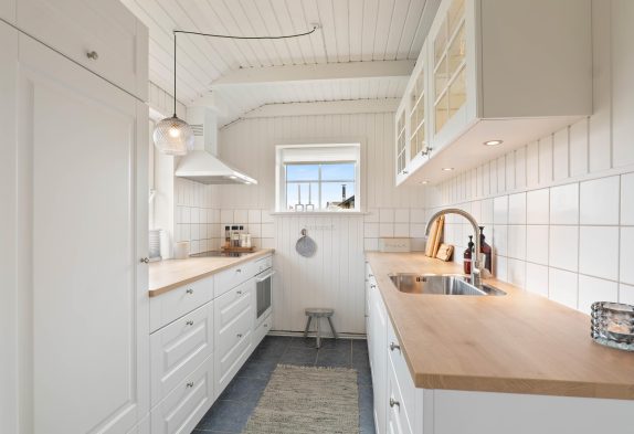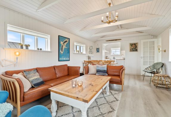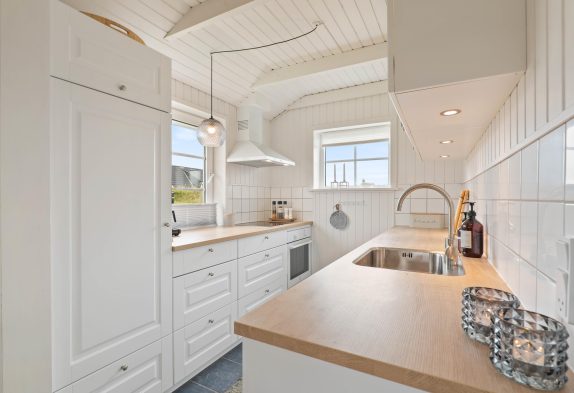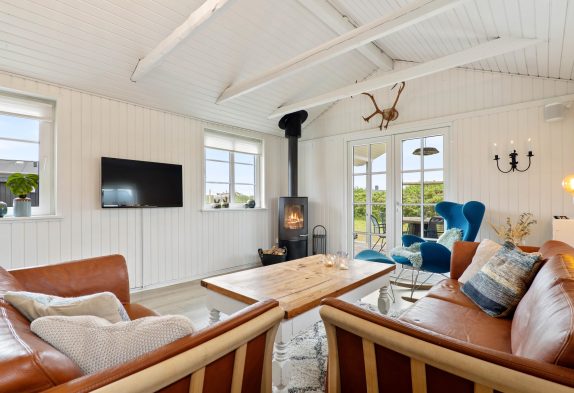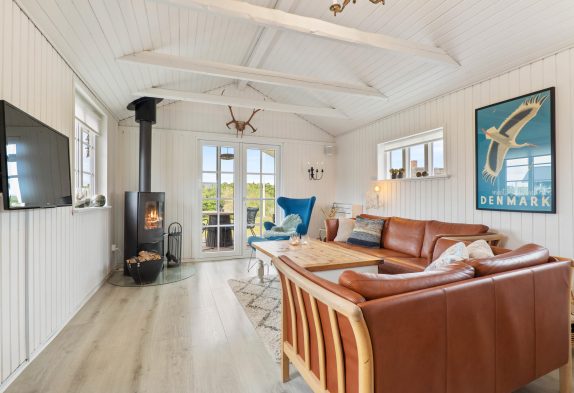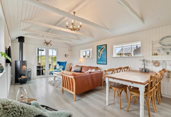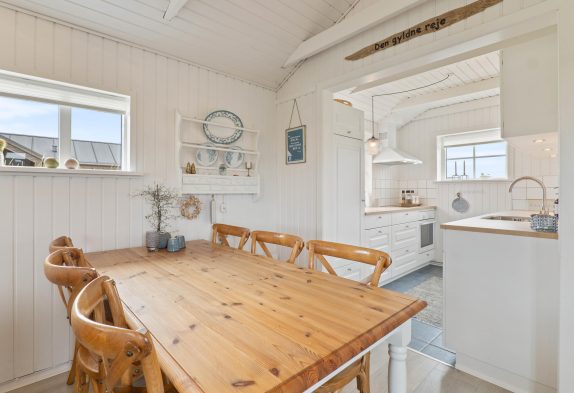 Alt i indretningen fremstår pænt og lyst og moderne. De hvidmalede vægge og lofter, der går til kip, giver sammen med de synlige loftsbjælker en rigtig hyggelig atmosfære i indretningen. Huset har 3 gode soverum, hvoraf de to er med dobbelseng og det sidste med en stor enkeltseng. Sommerhuset byder desuden på gratis internet, en Sonos radio og en Chromecast, så underholdning er sikret, hvad enten det er via streaming eller online spil. En ekstra stor kummefryser på 100L, vaskemaskine og tørretumbler står her til jeres rådighed. Huset er derfor et godt valg til børnefamilien, der ønsker at holde en dejlig ferie.