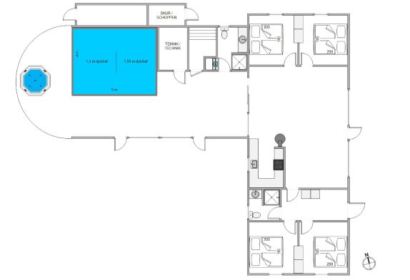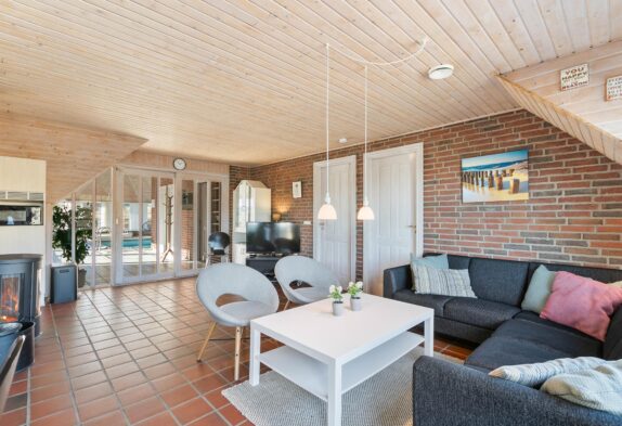 Med en beliggenhed bare 150 meter fra Vesterhavet er I kun nogle få minutters gang fra en rigtig dejlig strand. Her kan I få sand mellem tæerne og nyde den friske natur. Hvis vejret er dårligt, så er det dog ingen hindring. Sommerhuset har nemlig en dejlig 16 m2 stor pool, som sikrer underholdning til børnene fra morgen til aften. De vil elske at plaske rundt i vandet – og der er selvfølgelig også plads til, at de voksne kan snuppe et par forfriskende baner frem og tilbage. Poolen bliver opvarmet med en energivenlig varmepumpe, hvilket betyder et mindre forbrug.