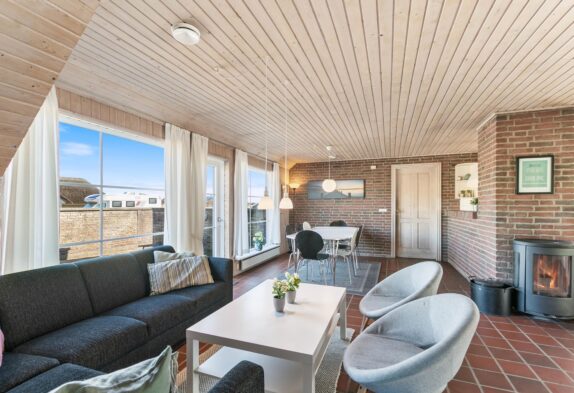 Uderummet er et sandt paradis for børnene og familiens hund. Her er der masser af plads til at lege på hele den ugenerede grund ned mod klitterne. Terrassen er perfekt til afslapning, som hører ferien til. Og når solen er fremme, kan de voksne trække sig tilbage og nyde varmen på solsengen eller diverse terrassemøbler.
