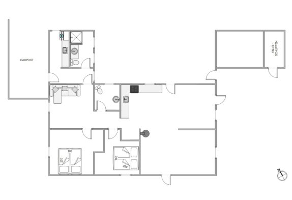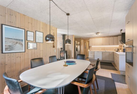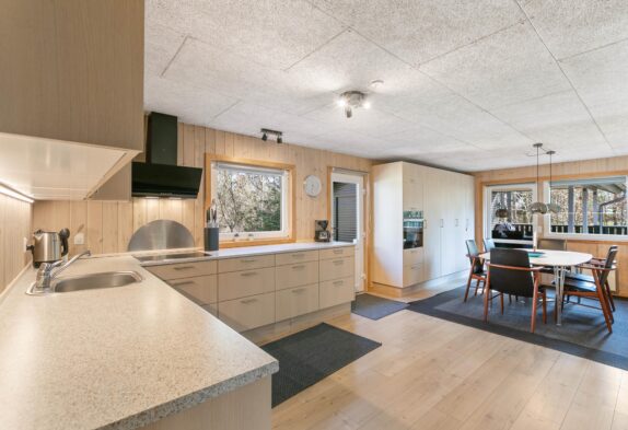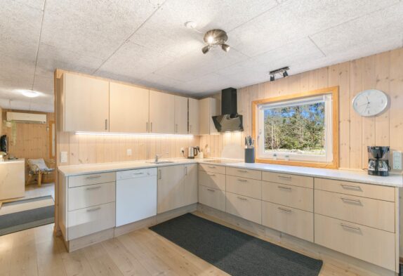 Huset er lyst og praktisk indrettet med det store køkken-opholdsrum som det naturlige samlingspunkt. Køkkenafdeling har alt, hvad der er nødvendigt til en god ferie, bl.a. amerikaner-køleskab, 180 l. fryser, mikroovn og opvaskemaskine, så alle kan bruge tiden på samvær og oplevelser.