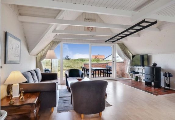 Rundt om hele hele huset er der skabt små, hyggelige oaser, som inviterer til afslapning og hygge. Her kan du altid finde en herlig hyggekrog med sol eller skygge. Perfekt til en dejlig frokost i det fri med et godt glas hvidvin eller udeleg for børnene. På terrassen finder I både grill og havemøbler, perfekt til hyggelige grillaftener i den friske luft med lyden af vesterhavet i baggrunden. Sommerhuset har både en åben og en overdækket terrasse, så I kan nyde udendørs livet i al slags vejr. For børnene er der også en lille sandkasse, hvor de kan bygge sandslotte og lege i timevis, og ellers er der kun 200 meter til det Vesterhavet, hvor de ikke kommer til at løbe tør for sand.