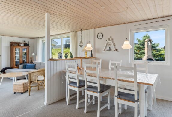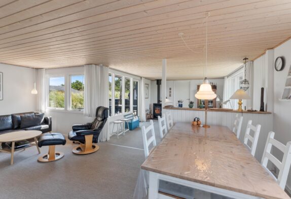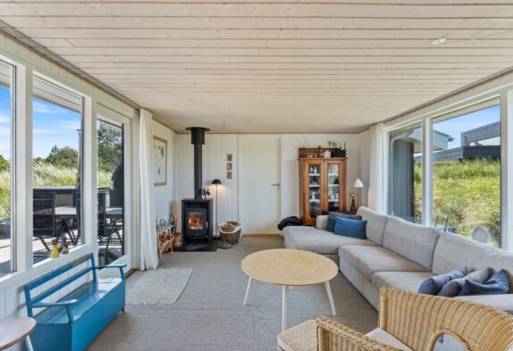 Har man været en travetur langs stranden og er blevet blæst godt igennem, så er intet mere afslappende end at komme tilbage til huset og nyde brændeovnens varme flammer. Dette charmerende feriehus er hyggeligt indrettet og de mange vinduer giver et dejligt lys i huset. En brændeovn inde i huset skaber hygge og varme på de kølige aftener, og hunden kan også slappe af i de hjemlige omgivelser, da én hund er tilladt.