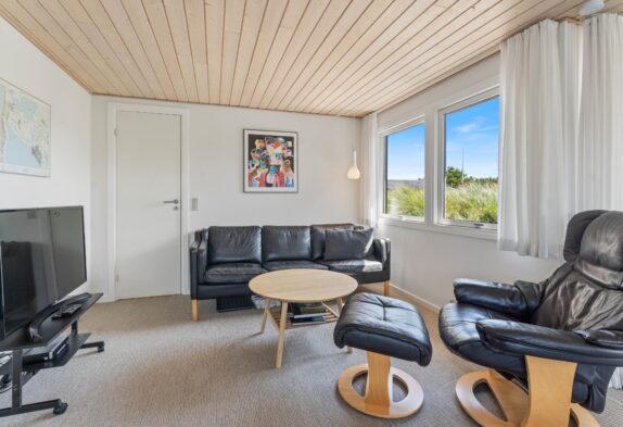 Dette feriehus har en skøn beliggenhed, blot 500 meter fra havets brusende bølger. Det betyder, at en hurtig tur til stranden eller en forfriskende dukkert altid er indenfor rækkevidde. Det smukke klitlandskab mod vest ses fra huset og terrassen og har man cykler med hjemmefra, er der et skønt stisystem som forbinder området fra Søndervig og til Hvide Sande. For lystfiskerne er Hvide Sande også et populært mål, ikke kun i sildesæsonen, men gennem det meste af året.