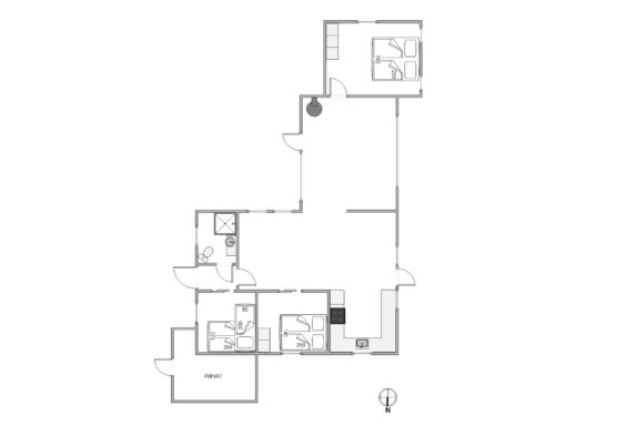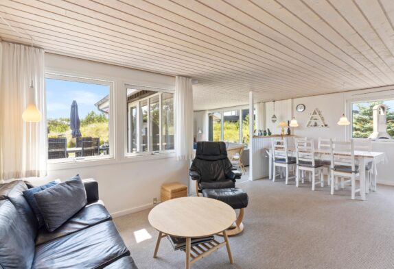 Sommerhuset byder på tre behagelige soverum, hvilket sikrer god nattesøvn til hele gruppen. Det er udstyret med en opvaskemaskine, således at I slipper for besværet med opvask og kan bruge tiden på at nyde ferien. En 90 liters separat fryser giver jer rigelig opbevaringsplads til madvarer, hvilket er praktisk, især når I har planlagt en længere ferie. En luft til luft varmepumpe sikrer en behagelig temperatur uanset årstiden, mens gratis internet gør det nemt for jer at holde kontakten med omverdenen.
