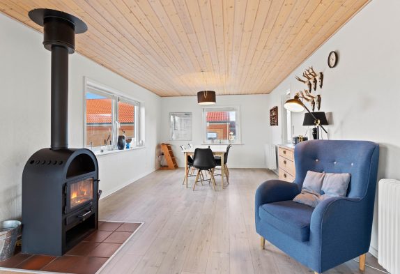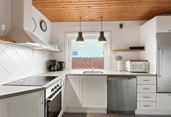 Lad bilen stå for en stund og nyd at stort set alt er indenfor gåafstand. Feriehuset ligger centralt i midten af Hvide Sandes bymidte på en rolig sidevej, hvor der stort set ingen trafik er. Med bageren og fiskehandleren som nærmeste naboer, er der god mulighed for at hente lidt lækkert og friskbagte goder.