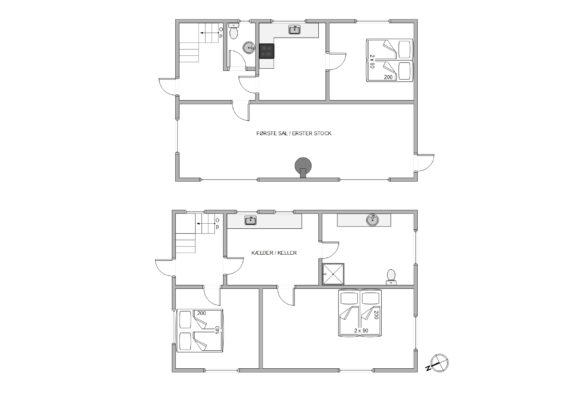 I kælderen findes et stort badeværelse, to rummelige soveværelser samt et kælderrum, hvor der er god plads til opbevaring. Og her finder I vaskemaskine og tørretumbler. Går I op af trappen, finder I på første salen endnu et soveværelse, et gæstetoilet, køkken og stue. I køkkenet kan I fremtylle lækkerier af friske lokale råvarer, mens stuen indbyder til hygge. Her kan I nyde måltidet omkring spisebordet og efterfølgende sætte jer til rette i sofaen og nyde hinandens selskab. På de køligere aftner kan I med fordel tænde op i brændeovnen, som spreder varme og hygge.