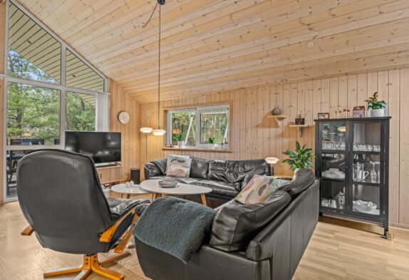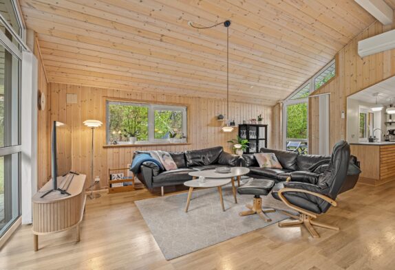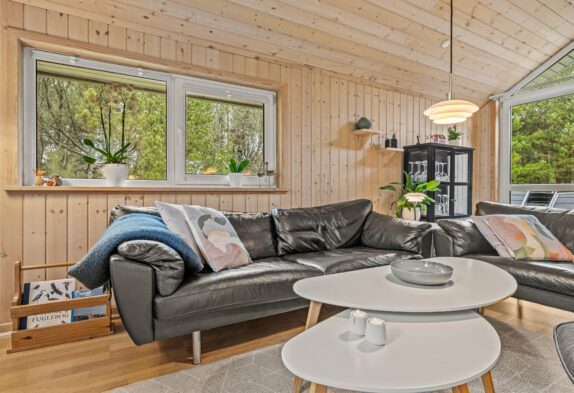 Fra sommerhusets stue er der direkte udgang til terrassen, der er udstyret med gode havemøbler, så I både kan slappe af og slikke sol men også kan hygge med lækker grillmad. Børnene kan hygge sig med leg på den 2740 m2 store grund, hvor der står gynger til deres rådighed.