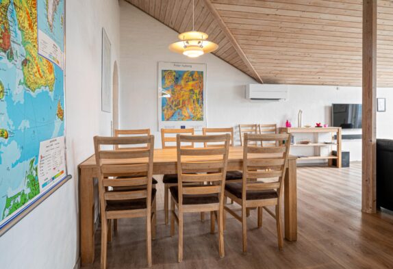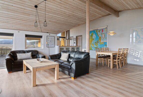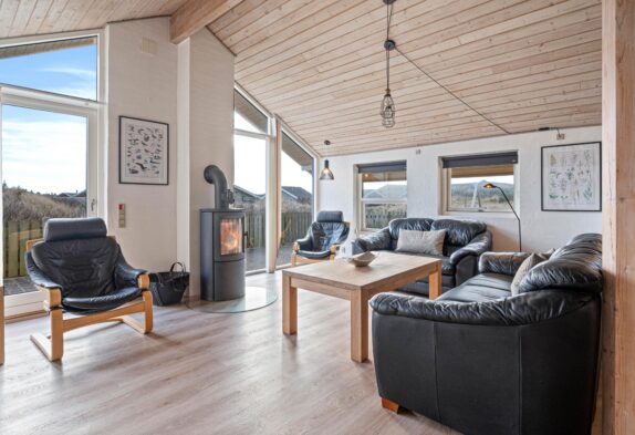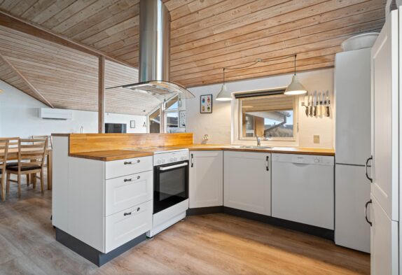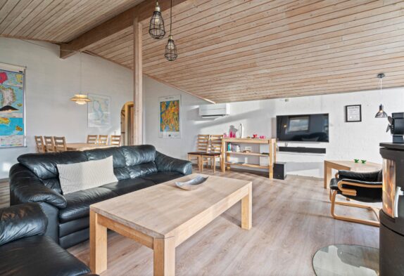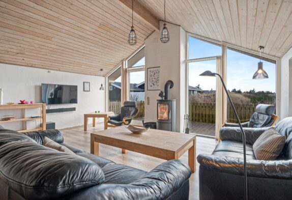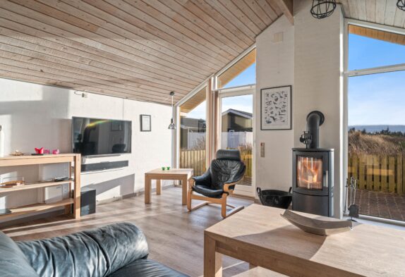 Feriehuset er lyst og rummeligt indrettet, så det fremstår indbydende til den afslappende ferie med dem, du holder allermest af. I hjertet af feriehuset har du den dejlige stue med brændeovn, spiseafdelingen og det åbne køkken, som tilsammen danner et naturligt samlingspunkt for hele familien.