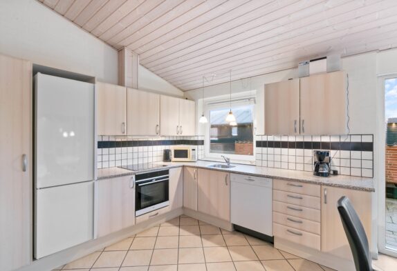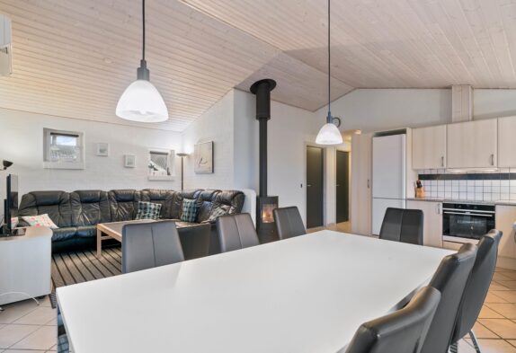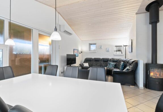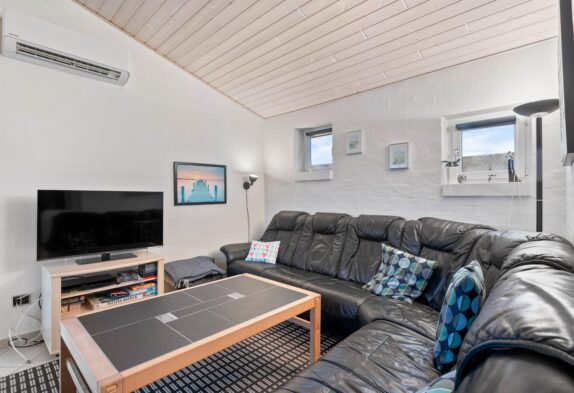 Hele opholdsrummet er med dejlige og praktiske klinker, samtidig med at der er højt til loftet, hvilket giver rummet en god fornemmelse. Sommerhuset er også med flere gode faciliteter, der sikrer at I for alvor vil føle jer hjemme. Der er både chromecast og fibernet, der sikrer at I kan surfe ubegrænset på internettet, samt I kan se lige netop jeres favoritserier og -film.