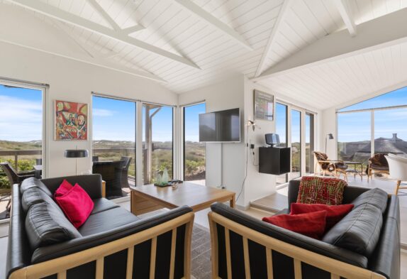 Takket være den unikke beliggenhed på en klittop i Houvig, kan du her nyde en panoramaudsigt over området. Hvem kunne ikke tænke sig at nyde morgenkaffen til en smuk solopgang over Ringkøbing Fjord, for senere at slutte dagen af med en hyggelig grillaften, hvor solnedgangen i Vesterhavet beundres?