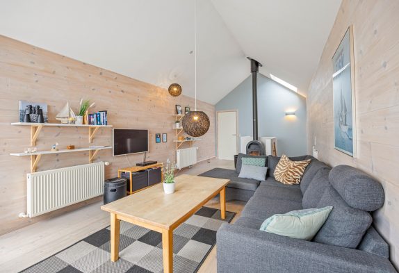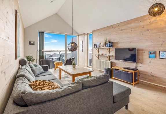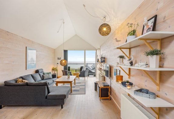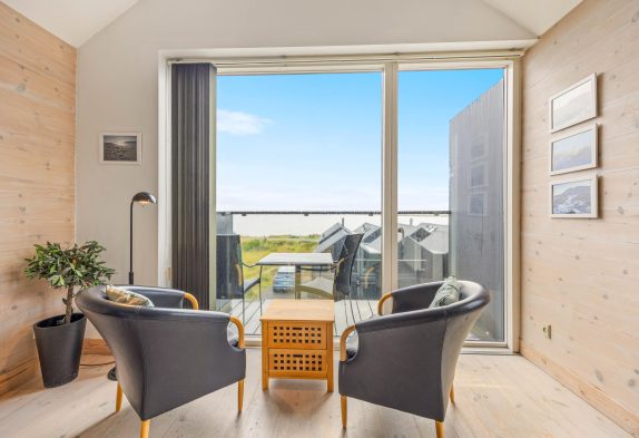 Skønt feriehus i Hvide Sande med en flot, lys og venlig indretning. Det ligger tæt på Ringkøbing Fjord, så du kan nyde panoramaudsigten over vandet og slusen. Og har du lyst til at opleve lidt mere af Hvide Sande, ligger havnen med de gode butikker og hyggelige spisesteder kun en gåtur derfra.