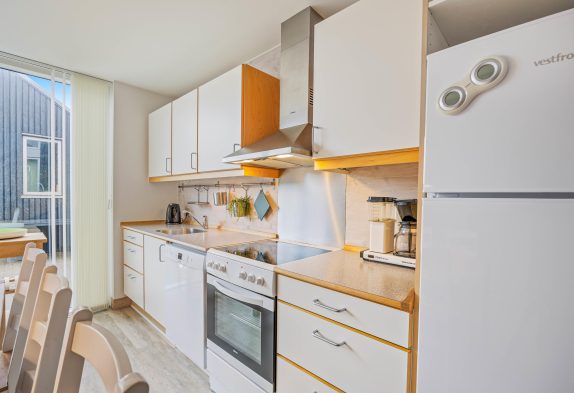 Og kun få minutter fra feriehuset finder du også Hvide Sandes mange gode butikker, de gode restauranter og røgerier, hvor den friske fisk kan nydes. I Hvide Sande keder du dig aldrig – her er hver årstid skøn på sin egen måde.