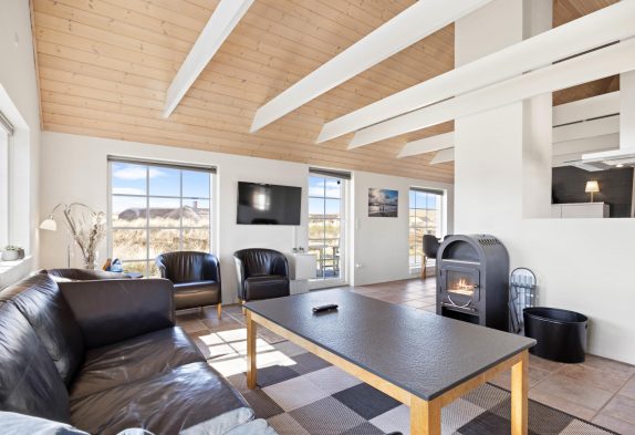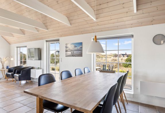 Fra feriehuset har du kun 150 meter ned til Vesterhavet og dets skønne sandstrand. Her elsker store såvel som små, hunde såvel som mennesker at gå lange ture langs vandet, lege i sandet eller bare at sidde og beundre udsigten over vandet. Sådan en tur ved stranden gør underværker for den stressede krop – især hvis den afsluttes med lidt varmt at drikke foran brændeovnen eller i spabadet og saunaen.