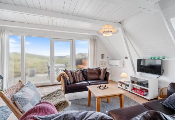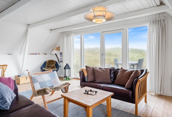 Området, som dette feriehus ligger i, er vidunderligt og malerisk. Det kuperede klitlandskab er smukt og barskt på samme tid, og der er ikke mange huse i synsfeltet. Stranden er enestående, og en gåtur herned vil blive et dagligt must. En solnedgang ved Vesterhavet imponerer altid. Måske efterfulgt af en tur i saunaen – så er det ægte ferie. En udflugt til Hvide Sande er ikke kun populært for lystfiskere, men også for dem, der gerne vil opleve havnebyens stemning, restauranter, caféer og de veludstyrede butikker. Nyd en softice på cafeen eller køb frisk eller røget fisk med hjem til aftensmaden.
