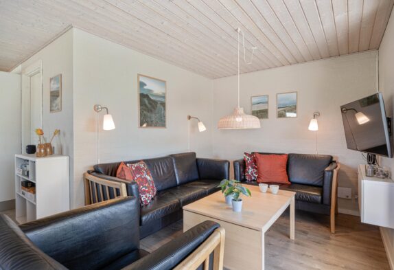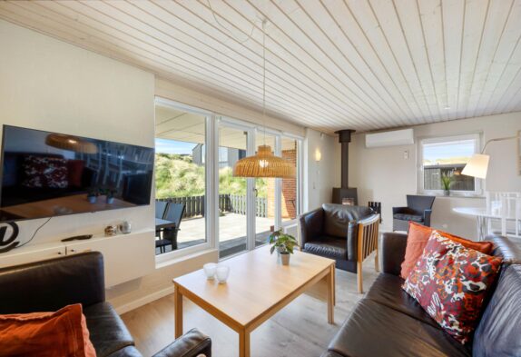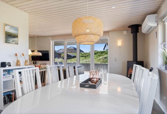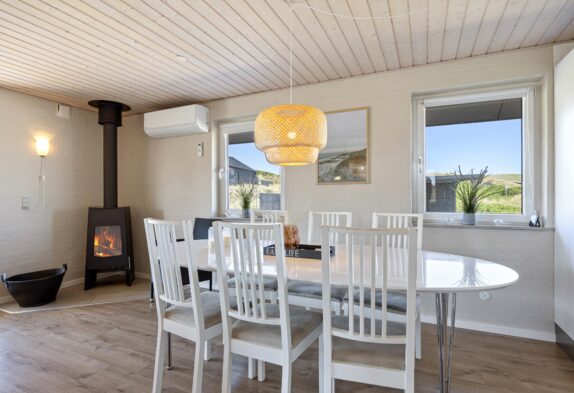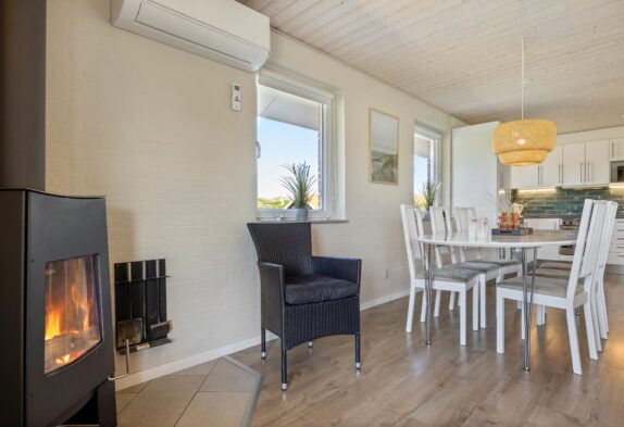 Et fint og hyggeligt feriehus, der er lyst og venligt indrettet, så du her kan slappe af og nyde tiden med dem, du holder allermest af. Tag plads i stuen og nyd udsigten til naturen omkring feriehuset, mens ilden fra brændeovnen knitrer i baggrunden.