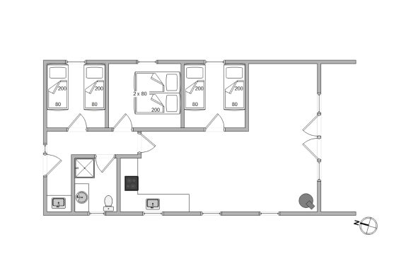 Fra feriehuset har du kun ca. 200 m. til stranden, så du har rig mulighed for at nyde lange gåture langs vandet, smukke solnedgange eller en forfriskende dukkert på en rigtig varm sommerdag.