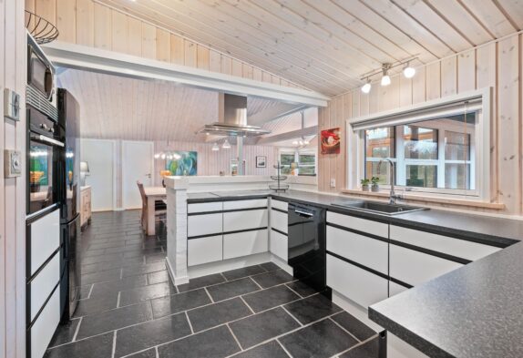 Det hyggelige opholdsrum hvor i både finder sofaafdeling, spiseafdeling og køkken er meget indbydende, og her er mulighederne mange. I kan eksempelvis holde en filmaften og hygge jer i den hyggelige sofaafdeling, hvor det også er oplagt at tænde op for brændeovnen, som kan sprede en varm og dejlig atmosfære. Det gode ved dette åbne rum er, at uanset om mor eller far står i køkkenet og kokkerer, kan I stadig holde samtalen kørende fordi I kan holde dem ved selskab fra sofaen eller fra spisebordet.