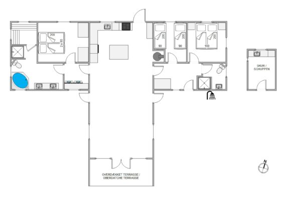 Har I været en tur på stranden, og været i vandet, har I her mulighed for at blive skyllet under feriehusets udebruser. OBS: Udebruseren er kun tilgængelig fra april-november.