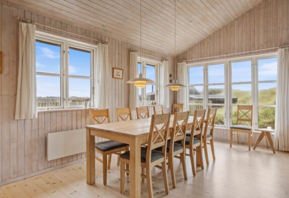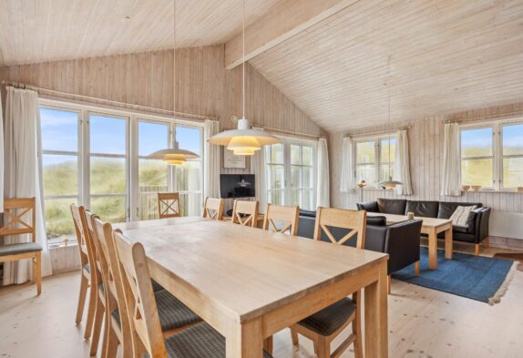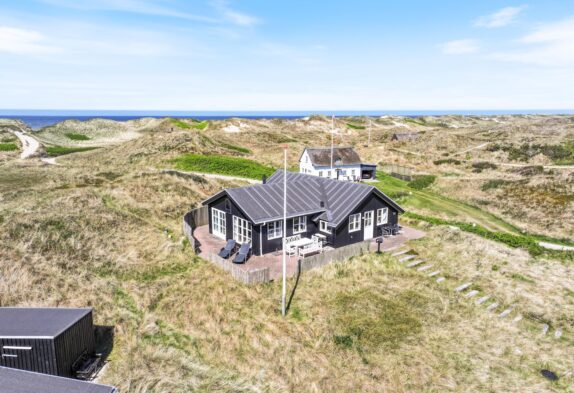 Med en panoramaudsigt over de smukke omgivelser får I her rig mulighed for at trække vejret dybt ind og nyde naturens skønhed. Feriehuset ligger kun 200 meter fra stranden. Her kan I hele året rundt nyde lange gåture langs vandet, der giver ro i både sjæl og krop, og herfra kan I nyde en smuk udsigt over klitterne. På klitten ved feriehuset finder I en bænk med havblik, hvor du kan beundre de idylliske solnedgange.