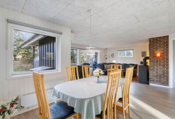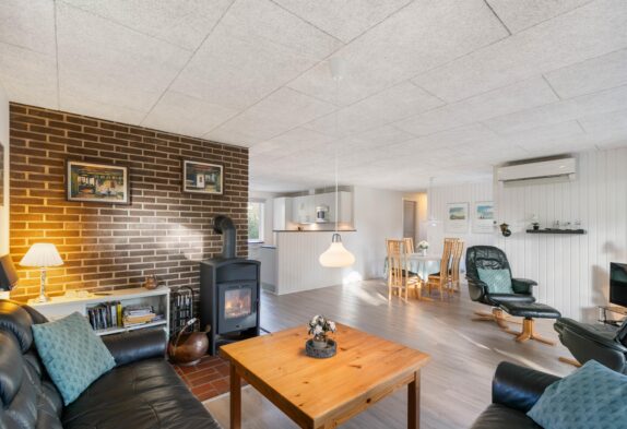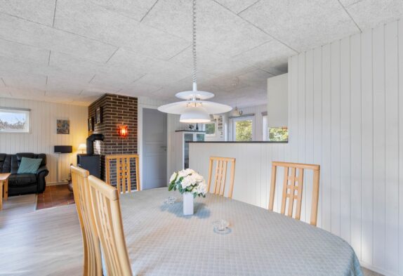 Dette velholdte og velindrettede feriehus, er både funktionelt og hyggeligt. Her er lyse vægge og lofter, en god energibesparende varmepumpe og en dejlig brændeovn til at sørge for varmen efter de lange ture ved Vesterhavet. Huset blev efterisoleret og sparer dermed lidt i forbrug og huset er nem at varme op.