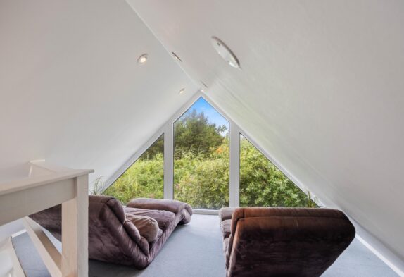 Et rummeligt feriehus med stråtag beliggende på stor naturgrund