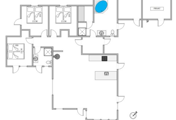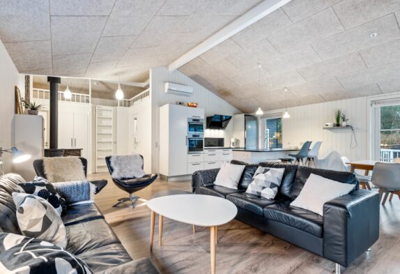Feriehuset er helt ideelt til dig, der ønsker masser af afslapning og kvalitetstid med familien eller vennerne. Det er rigtig dejligt indrettet, så du har et stort fællesrum i form af stuen, spiseafdelingen og det åbne køkken. Her kan I alle være sammen og nyde hinandens selskab.